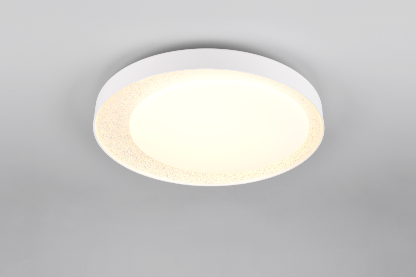O candeeiro de teto ALETA impressiona pelo seu design minimalista e harmonioso que se concentra no essencial: a luz. Pode ajustar facilmente a cor da luz e a luminosidade a seu gosto, utilizando o controlo remoto fornecido. Em alternativa, a luminosidade também pode ser regulada em vários níveis através do interrutor de luz convencional. A ALETA possui ainda uma prática luz nocturna e uma função de memória que guarda as últimas definições selecionadas. O acabamento branco no interior do candeeiro de teto branco, de resto minimalista, cria um brilho cintilante e espalha uma luz agradavelmente suave na divisão. A luminária também possui a moderna tecnologia LED, que se caracteriza por uma elevada qualidade de luz e eficiência energética. Em comparação com as fontes de luz de halogéneo convencionais, é possível poupar até 80% dos custos de energia. As fontes de luz LED também têm uma longa vida útil, produzem menos calor e protegem o ambiente.