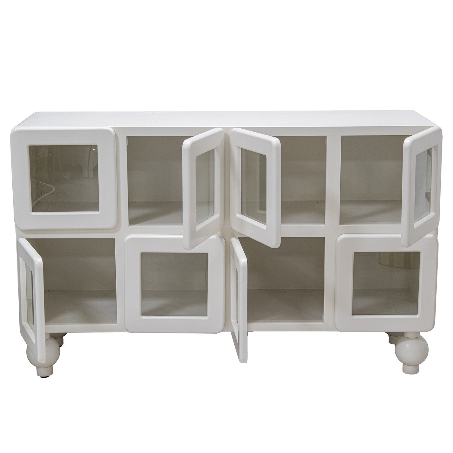 Aparador Em Madeira Mdf Branca Com 8 Portas De Vidro _120x30x80cm
