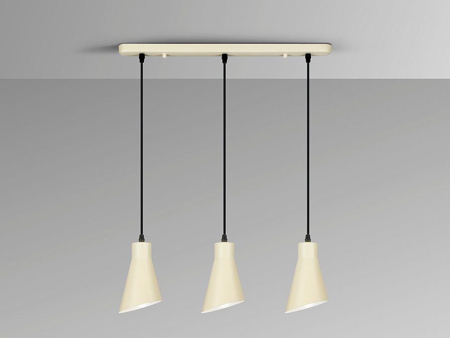 Candeeiro de 3 luzes realizado em metal com acabamento creme acetinado. Regulável em altura. 3 E27