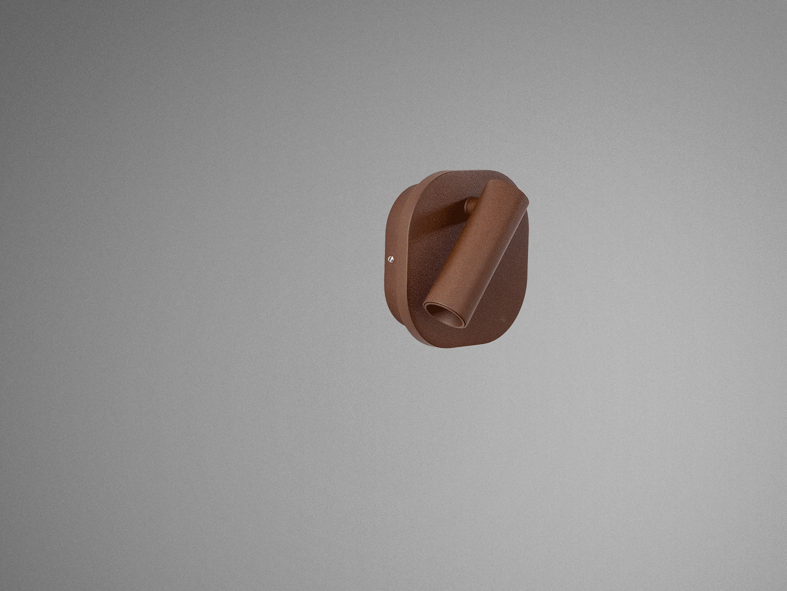 Candeeiro de parede em alumínio, acabamento castanho óxido. Iluminação: Foco de leitura de 2,1 W e retroiluminação de 6 W, ambos LED CCT e regulação independente de tom de luz e intensidade por interruptor tátil. LED 8,1W. CCT: 2700-4000K. 167+391 lm