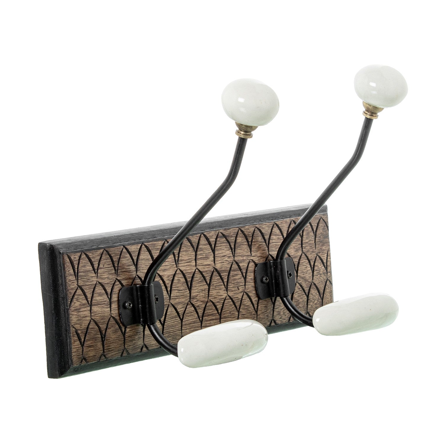 Bengaleiro De Parede Em Madeira De Manga Com 2 Ganchos Em Ferro/cerãémica_28x1,5x9,5cm