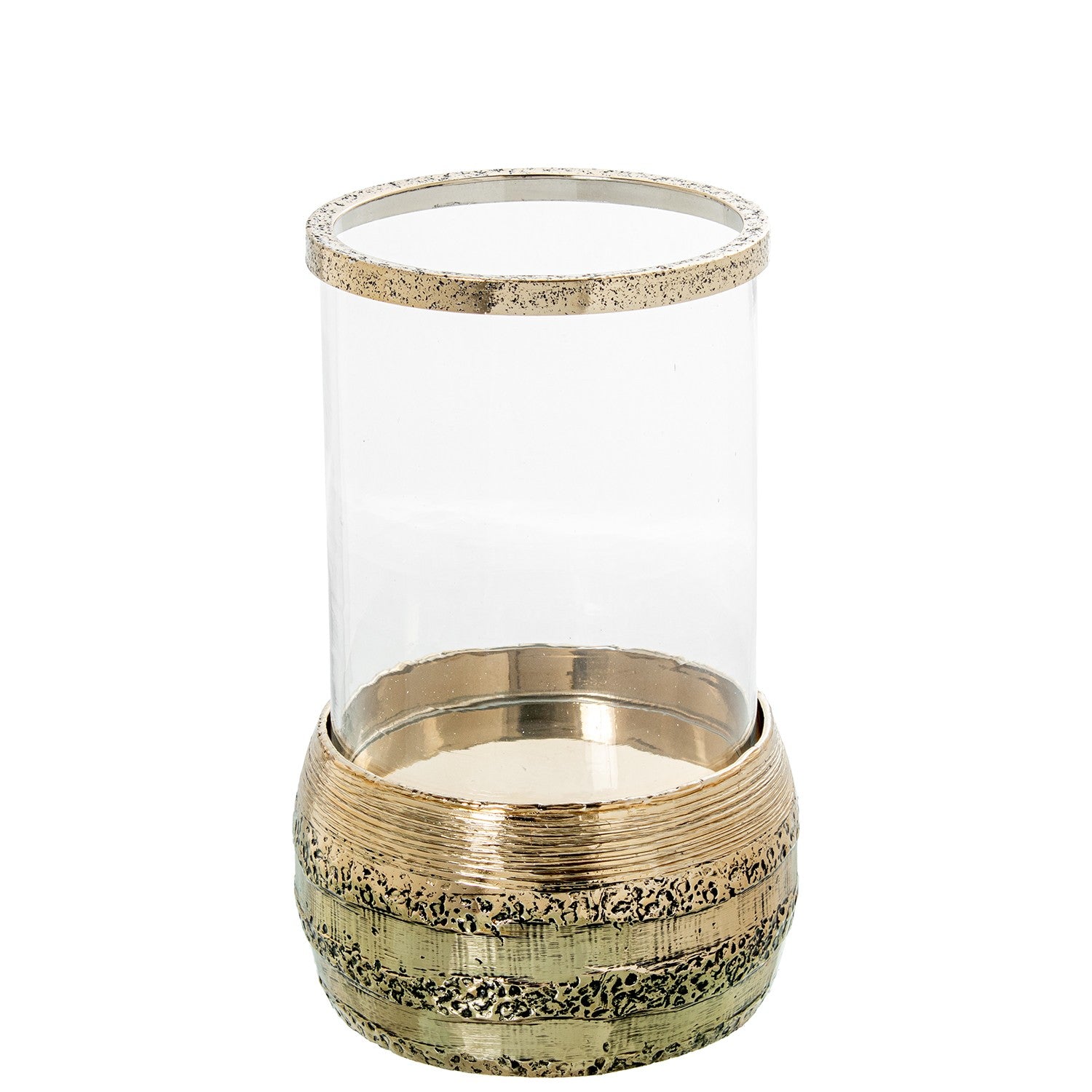 Castiçal De Alumínio Dourado E Vidro_ø18x27cm