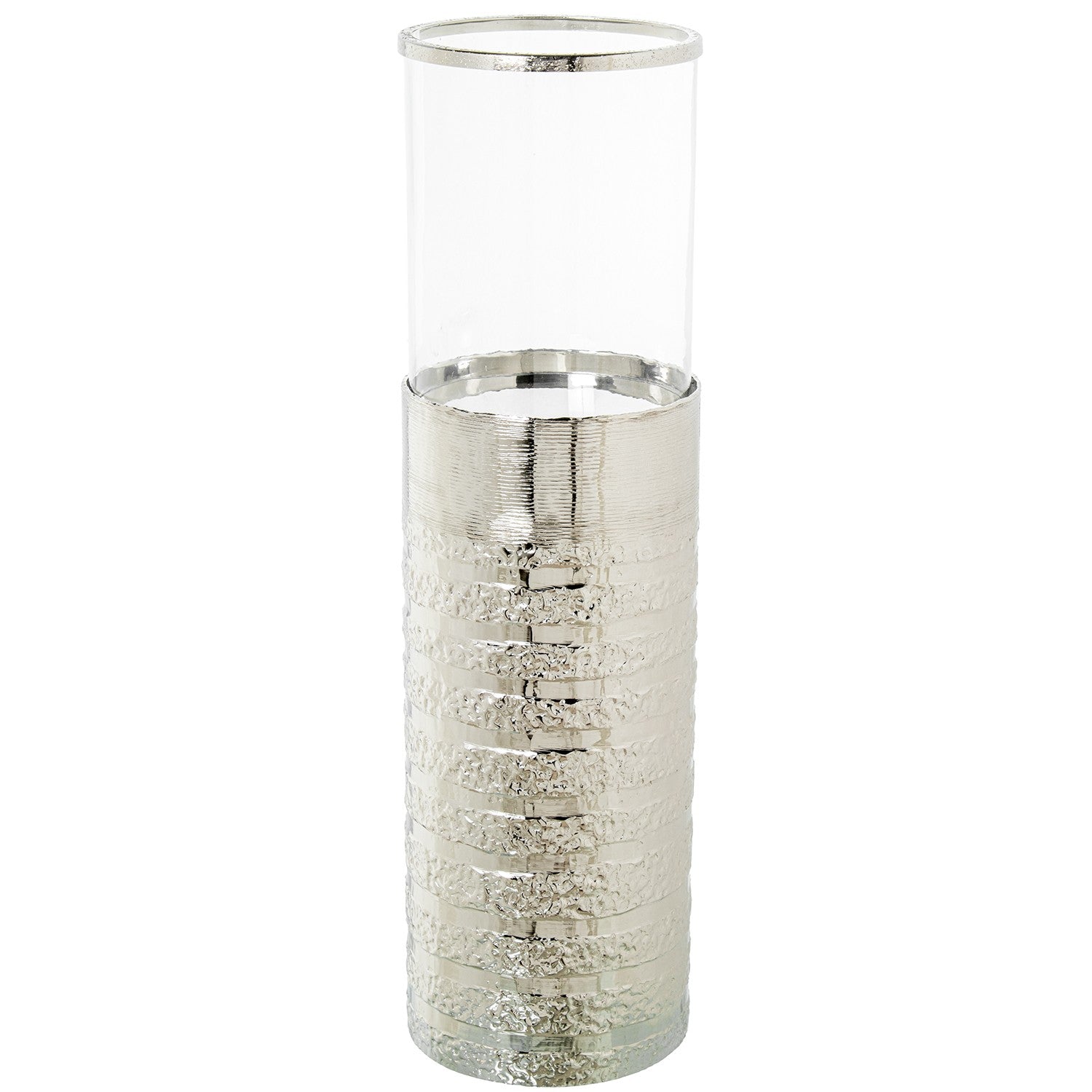 Castiçal De Alumínio Prata E Vidro_ø21x74cm