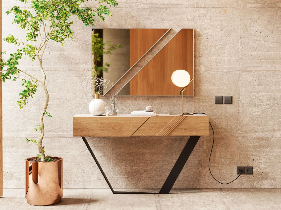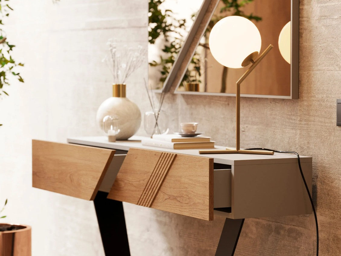 Consola em carvalho rústico. Esta peça elegante e sofisticada é perfeita para dar mais vida à decoração do seu hall de entrada.