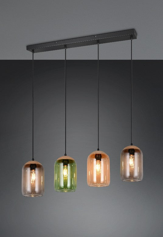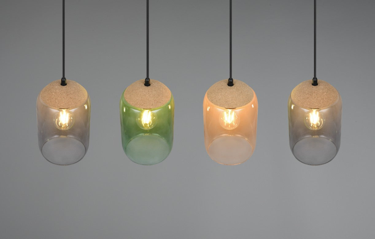 Uma fascinante interação entre luz e sustentabilidade - o nosso candeeiro suspenso CORK de três luzes é a peça central perfeita. A combinação harmoniosa de vidro reciclado e cortiça dá vida às cores da vida. Com o seu aspeto estético, integra-se perfeitamente na sua área de estar e de jantar e cria um ambiente acolhedor com tons de cores quentes. A sua paleta de cores verde, âmbar e fumo cria uma sensação de ligação com a natureza. A utilização da mistura de materiais de cortiça, vidro e metal reforça esta sensação de natureza e confere à divisão um equilíbrio harmonioso entre naturalidade e design moderno.