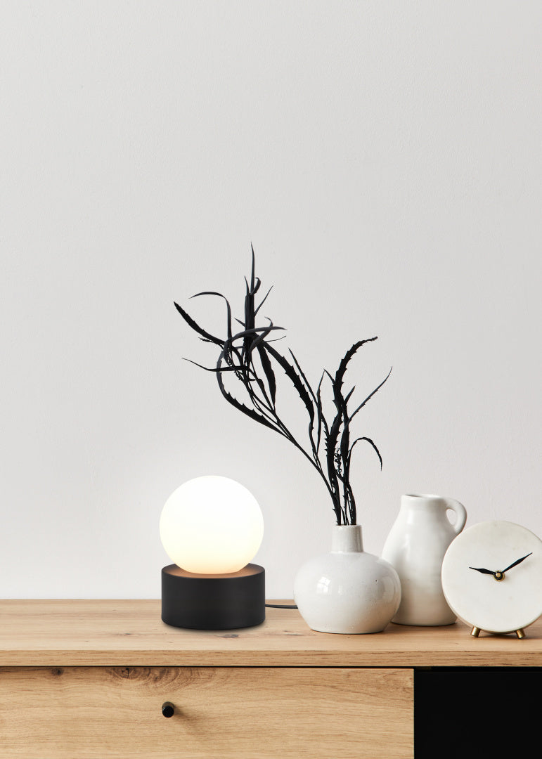 O candeeiro de mesa COUNTESS convence pela sua forma simples e de inspiração clássica. Uma luz agradável é emitida através do pequeno vidro em forma de esfera, o que cria uma atmosfera de iluminação acolhedora. Equipado com uma prática função tátil ON/OFF, este candeeiro de mesa tem lugar em todo o lado. O abajur de vidro branco cria um grande contraste com a base do candeeiro em preto mate. Para uma iluminação economizadora de energia, recomenda-se a utilização de uma lâmpada LED. Estas são uma óptima alternativa às lâmpadas de halogéneo convencionais e representam uma elevada qualidade de luz e uma poupança de energia de até 80%. Além disso, as lâmpadas LED ajudam-no a beneficiar de uma longa vida útil, de uma baixa produção de calor e, ao mesmo tempo, protegem o ambiente.