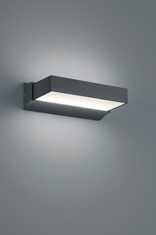 O candeeiro de parede exterior CUANDO impressiona pelo seu design marcante e materiais de alta qualidade. A luminária é fabricada em alumínio fundido sob pressão e é ideal para utilização no exterior graças ao seu grau de proteção IP54. Graças à emissão de luz para cima e para baixo, a luminária proporciona uma iluminação agradável e eficaz na entrada da casa, na varanda ou no pátio. A luminária de parede tem uma largura de 23 cm, uma altura de 7 cm e uma projeção de 14 cm. O design de cor antracite pode ser combinado de várias formas e garante um aspeto moderno.