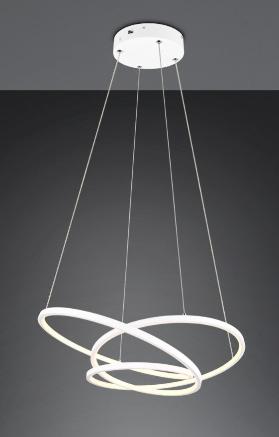 O candeeiro suspenso DARVIN é um verdadeiro chamariz para qualquer sala de estar ou de jantar. O seu design único cria um fio artisticamente curvo e estabelece novos padrões. A fita LED de alta qualidade não só melhora o efeito estético, como também proporciona uma iluminação eficiente e agradável. A cor da luz e a luminosidade podem ser ajustadas de forma cómoda e infinita através de um interrutor de luz convencional para criar a iluminação ideal da divisão, de acordo com as necessidades ou a hora do dia. Esta combinação bem-sucedida de design criativo e tecnologia de iluminação moderna faz do DARVIN um elemento versátil que, ao mesmo tempo, realça o aspeto visual e cumpre os mais elevados requisitos funcionais. Com a sua elegante cor branca mate, a luminária integra-se de forma intemporal e moderna em qualquer ambiente e contribui também para a eficiência energética. A luminária também possui a moderna tecnologia LED, que se caracteriza por uma elevada qualidade de luz e eficiência energética. Em comparação com as fontes de luz de halogéneo convencionais, é possível poupar até 80% dos custos de energia. As fontes de luz LED também têm uma longa vida útil, produzem menos calor e protegem o ambiente.