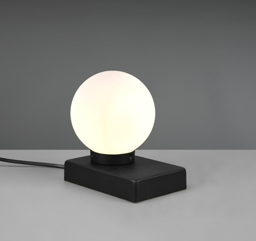 Equipado com uma prática função tátil, o DAVI pode ser colocado em quase todo o lado! Colocado ao lado da cama ou sobre uma cómoda, o candeeiro de mesa moderno proporciona uma luz discreta e agradável. O abajur de vidro branco cria um grande contraste com o design preto mate do candeeiro.