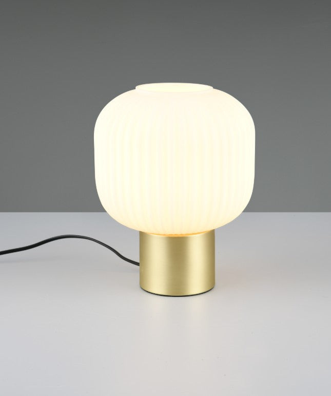 O atraente abajur de vidro do candeeiro de mesa DIVA confere um encanto especial ao seu interior. Colocado de forma elegante num aparador, atrai a atenção como um impressionante chamariz. A forma e o design especiais do vidro difundem a luz de forma suave e sem reflexos, criando um jogo de luz acolhedor. Este ambiente luminoso acolhedor, aliado ao design intemporal, fará com que a DIVA se torne rapidamente numa das preferidas da sua casa. A combinação glamorosa de latão mate e vidro opalino branco confere ao candeeiro um aspeto elegante e discreto.