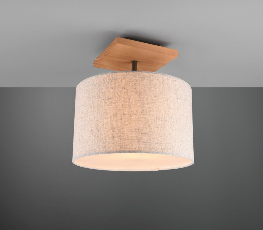 Os materiais naturais, como a madeira e o tecido, são convidativos e criam uma atmosfera acolhedora. Os candeeiros da série ELMAU trazem um charme acolhedor e um ambiente de iluminação agradável para a sua casa. Quer seja no corredor, na sala de estar ou no quarto, o candeeiro de teto de design vintage oferece uma vasta gama de aplicações. O design de cor clara em madeira e tecido bege pode ser facilmente combinado com diferentes conceitos de cores e mobiliário.