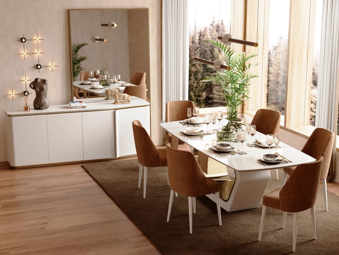 Espelho alto, com pontas arredondadas e detalhes em dourado. A sua elegância e versatilidade vão fazer desta peça um dos principais destaques da divisão em que se encontra.