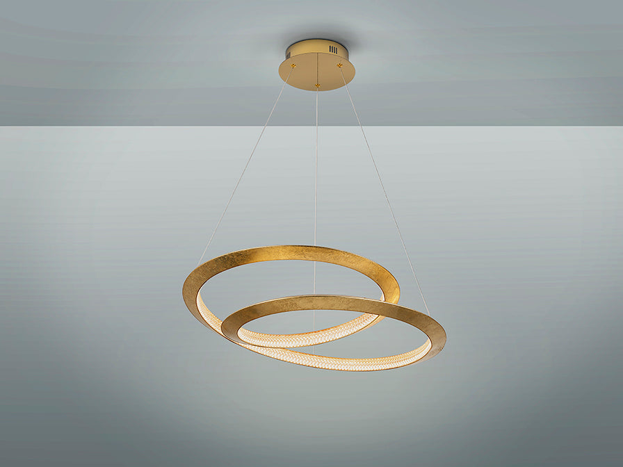 Candeeiro realizado em metal acabamento folha de ouro e banho de ouro. Difusor de peças de acrílico transparente. 45W LED, 2.465 lm, 3.000 K.