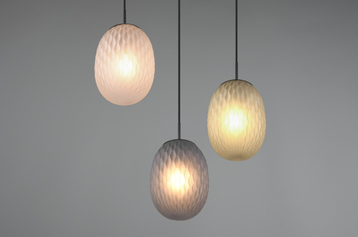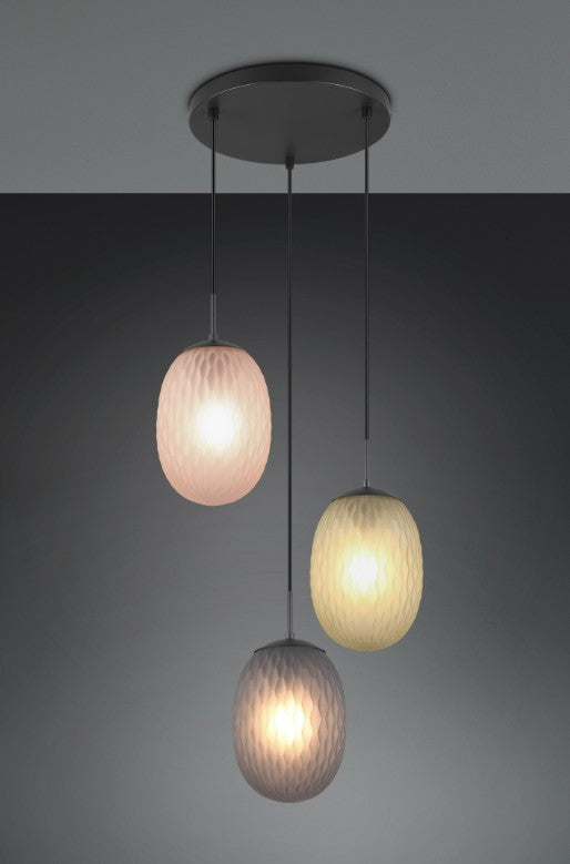 Os copos coloridos com um relevo apelativo são muito populares - tal como a gama FACETTE! O jogo de formas, os pormenores criativos e as cores mate deixam uma impressão duradoura e criam um destaque inesquecível na sua sala de estar. Quer esteja por cima da mesa de jantar ou do balcão da cozinha, a luminária suspensa de três lâmpadas impressiona pela sua distribuição de luz sem encandeamento e reflexos deslumbrantes. O design colorido em verde, âmbar e fumo torna a luminária um verdadeiro chamariz e garante um efeito de iluminação impressionante.