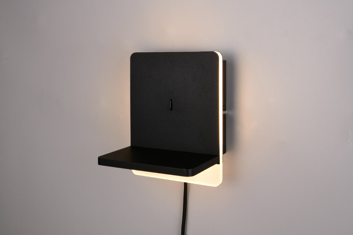 Candeeiro de parede FAIRFIELD - para um toque acolhedor à volta da cama! O seu design simples e a luz indireta contribuem para o relaxamento no quarto e proporcionam uma luminosidade acolhedora, perfeita para horas relaxantes de leitura à noite. Com a sua estação de carregamento indutivo integrada, o candeeiro permite o carregamento fácil de smartphones compatíveis. Em alternativa, oferece uma ligação USB e USB-C com opção de carregamento. Graças à funcionalidade FLEXconnect, a luminária de parede é extremamente versátil - pode ser operada tanto através de um interrutor como sem um cabo através da ligação fixa. Neste caso, a operação é feita através de um interrutor de parede convencional. O regulador de intensidade SWITCH integrado permite ajustar a FAIRFIELD a três níveis de luminosidade (100 %, 50 % e 25 %) e adaptá-la às suas necessidades. O design simples em preto mate garante que o candeeiro se integra facilmente em qualquer interior.