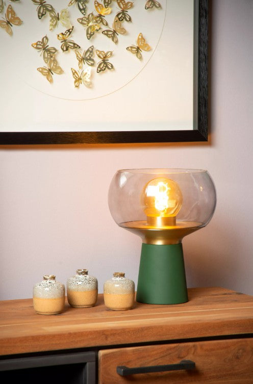 Farris faz você sonhar com noites aconchegantes de verão no terraço ao redor de uma cesta de fogo. Com este candeeiro de mesa, traz aqueles momentos quentes para dentro de casa, mesmo nos dias mais rigorosos de outono ou inverno. Seu design lúdico e um tanto retrô é formado por vidro fume e aço de alta qualidade. Devido ao abajur semicircular, a fonte de luz é claramente visível e este candeeiro de mesa irradia uma atmosfera extremamente fina. Você liga e desliga a lâmpada com o interruptor no cabo. Momentos aconchegantes? Eles começam com Farris.