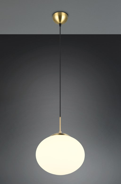 O candeeiro suspenso FOMENTO cria um toque suave por cima da mesa de jantar ou da sala de estar. A elegante cabeça de luz elipsoidal em vidro opalino dá um toque especial à luminária e distribui a luz de forma agradável pelo ambiente. A combinação de latão mate e vidro branco cria um toque de luxo e sofisticação ao mesmo tempo.
