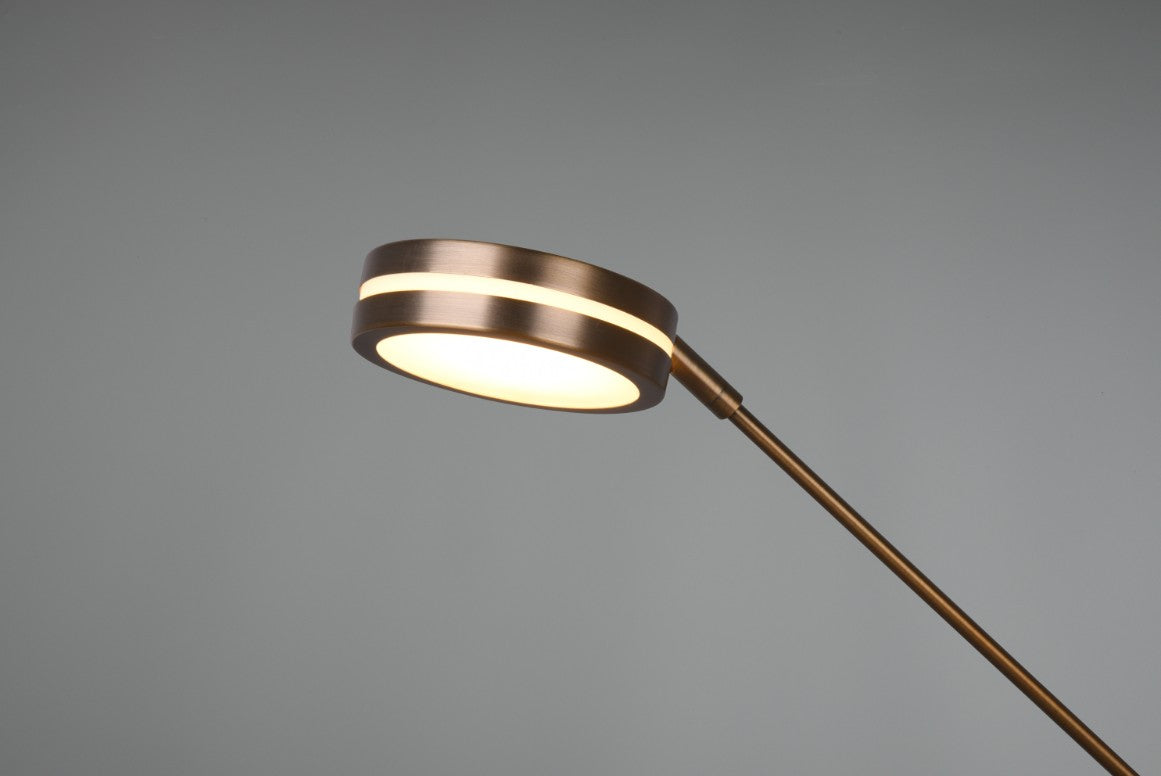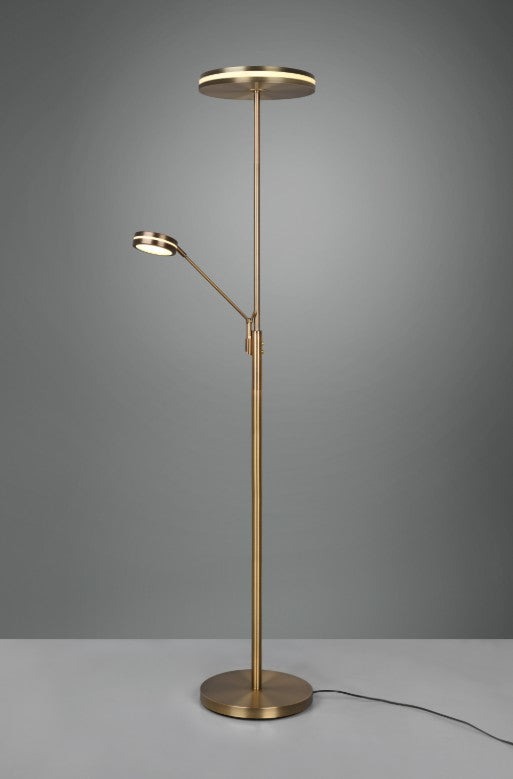 Prático, funcional e com estilo! O candeeiro FRANKLIN impressiona pelo seu aspeto moderno e futurista. Colocado ao lado do sofá ou no corredor, o candeeiro de pé cria um ambiente de iluminação agradável graças a um sensor de regulação que pode ser utilizado para regular continuamente a luminosidade e a cor da luz. Dois interruptores separados permitem que a fonte de luz principal e o braço de leitura sejam utilizados separadamente. A função de memória integrada adicional repõe automaticamente o último cenário de luz definido. Graças ao design clássico da cor em latão antigo, o candeeiro pode ser combinado com muitos estilos de mobiliário.