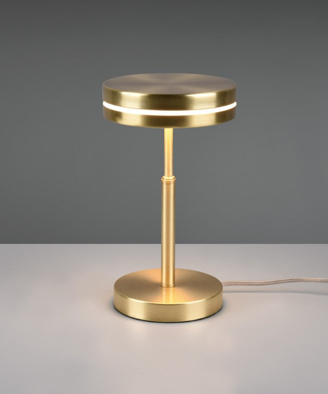 Prática, funcional e com estilo! A luminária FRANKLIN impressiona pelo seu aspeto moderno e futurista. Colocado na mesa de cabeceira ou na cómoda, o candeeiro de mesa proporciona um ambiente de iluminação agradável. Pode ser facilmente ligado e desligado através do interrutor do cabo. Graças ao design colorido em latão mate, o candeeiro dá um toque de estilo e torna-se um chamariz no seu interior.