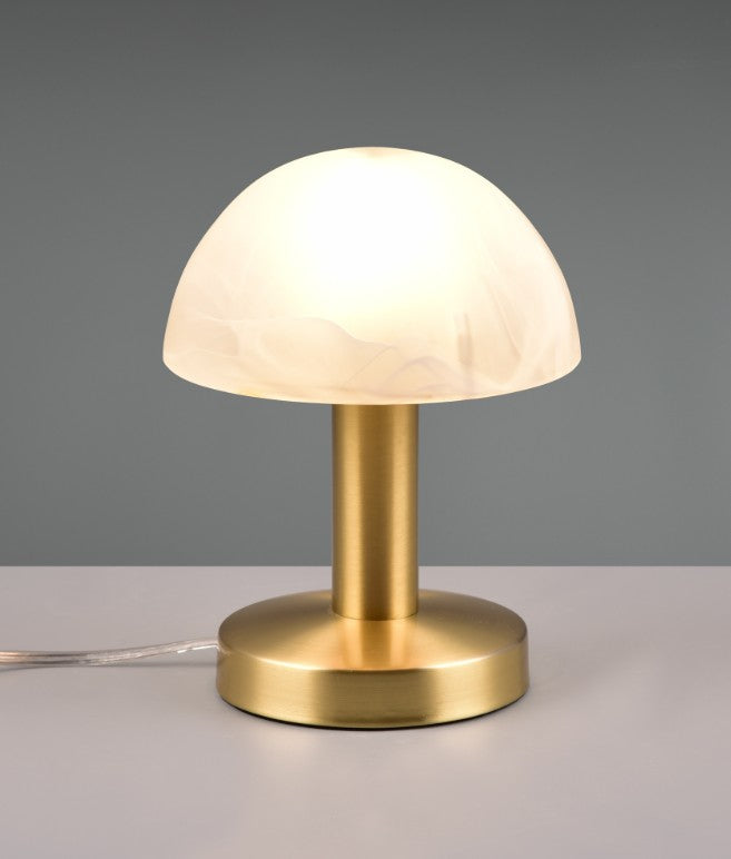 O candeeiro de mesa da série FYNN II tem a forma de um candeeiro de mesa clássico. O seu esquema de cores elegante e a função de toque tornam-no especial. Um simples toque é suficiente para acender o candeeiro. A agradável cor de latão mate com o vidro simples caiado de branco sublinha o design elegante do candeeiro e cria um aspeto clássico.