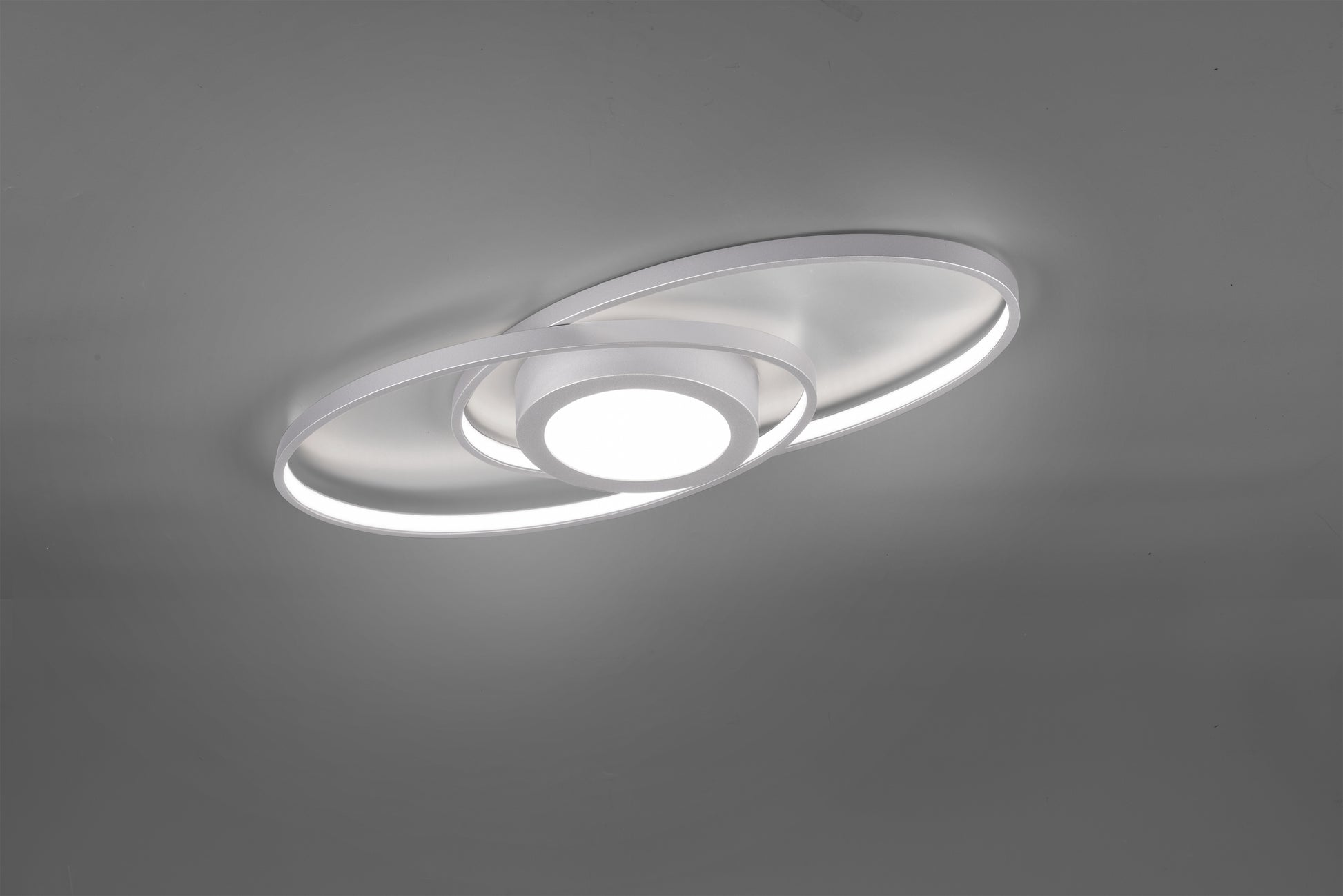 Com o seu design moderno e invulgar, o candeeiro de teto GALAXY cria um atrativo impressionante no seu espaço de vida. O candeeiro é ideal para iluminar áreas específicas com um efeito ótimo. A luz também impressiona pelas suas funções adicionais práticas. O regulador de intensidade SWITCH integrado permite-lhe escolher entre três níveis de luminosidade diferentes utilizando um interrutor de luz convencional. Ao graduar a intensidade da luz de 100% para 50% e 25%, a luminária pode ser utilizada para criar diferentes ambientes de iluminação. O candeeiro tem uma altura de 4 cm e uma largura de 57 cm. A superfície de titânio confere ao candeeiro de teto um design moderno que pode ser encontrado em vários estilos de mobiliário. Além disso, a luminária possui a moderna tecnologia LED, que se caracteriza por uma elevada qualidade de luz e eficiência energética. Em comparação com as lâmpadas de halogéneo convencionais, é possível poupar até 80% dos custos de energia. Além disso, as fontes de luz LED têm uma longa vida útil, produzem menos calor e protegem o ambiente.