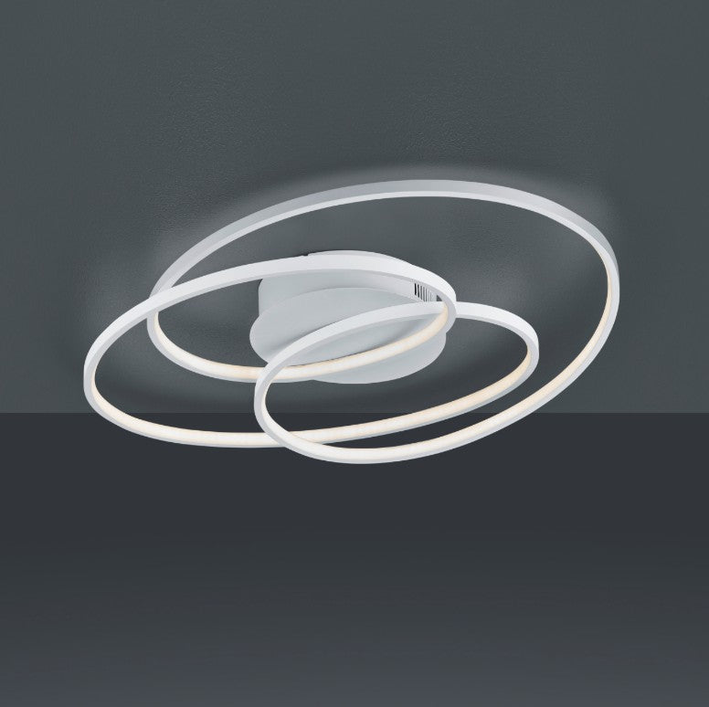 Um destaque em qualquer sala de estar! O candeeiro de teto GALE cria efeitos de iluminação atmosféricos. Com o seu design moderno e invulgar, o candeeiro confere à sua sala um charme individual que irá impressionar. Na sala de estar, no corredor ou por cima da mesa de jantar, onde quer que seja, a GALE proporciona aquele toque especial em todo o lado! A luminária também possui um regulador de intensidade SWITCH, que permite regular a luminosidade de 100% para 50% e 25% utilizando um interrutor de luz convencional. O candeeiro de teto tem uma altura de 13,5 cm e um comprimento de 60 cm. Graças ao esquema de cores branco mate, a luz pode ser combinada com muitos estilos de mobiliário.