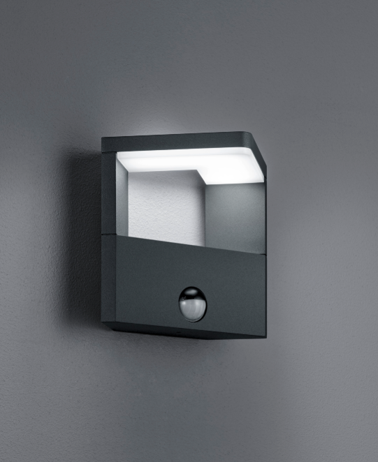 O candeeiro de parede exterior GANGES impressiona pela sua forma clara e elegante. Integra-se harmoniosamente em qualquer ambiente de jardim. Graças ao seu grau de proteção IP54, resiste a todas as condições climatéricas. O candeeiro dispõe ainda de um prático detetor de movimento que cobre uma área de 9 metros a 120. A luminária é fabricada em alumínio fundido sob pressão, robusto e de alta qualidade, em antracite.