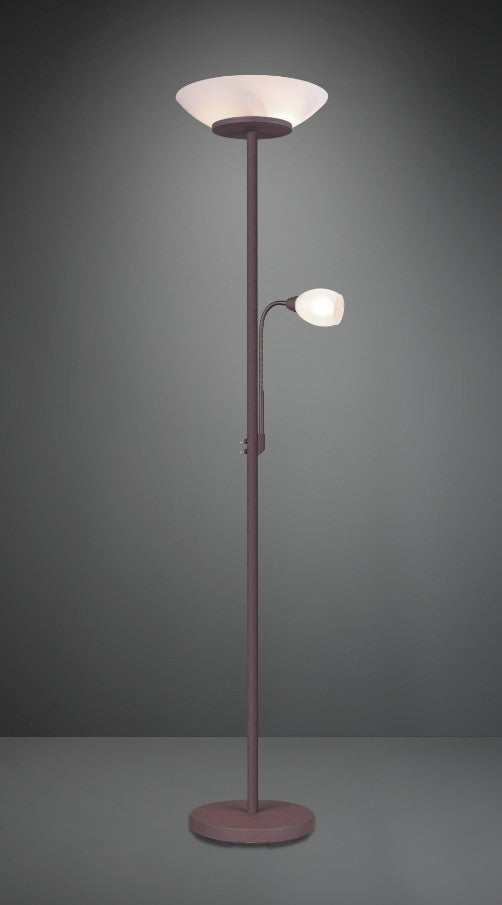 Design simples e modernidade intemporal. O projetor GERRY oferece inúmeras opções de aplicação e combinação. Idealmente, a luminária deve ser posicionada junto ao sofá, uma vez que um braço de leitura flexível garante o melhor resultado de iluminação possível, para além da luz de teto como fonte de luz principal. Esta pode ser direccionada de forma orientada para que o padrão de luz desejado possa ser selecionado livremente. O projetor tem uma altura de 180 cm e um diâmetro de 34 cm. Graças ao design clássico em cor de ferrugem, o candeeiro pode ser combinado com muitos estilos de mobiliário. A utilização de fontes de luz LED é recomendada para uma iluminação economizadora de energia. Estas são uma alternativa ideal às fontes de luz de halogéneo convencionais e oferecem uma elevada qualidade de luz e uma poupança de energia até 80%. Com as fontes de luz LED, também beneficia de uma longa vida útil e de uma baixa produção de calor, protegendo o ambiente.
