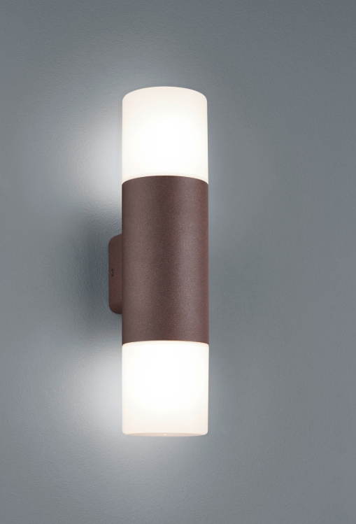 Decorativa e funcional - a luminária de parede da gama HOOSIC com uma atraente iluminação ascendente e descendente. No escuro, a luminária de parede revela todo o seu efeito e emite a luz uniformemente para cima e para baixo, criando uma intensidade de luz eficaz e agradável. Graças ao alumínio fundido resistente às intempéries em combinação com o grau de proteção IP44, a luminária de parede com um tamanho de 8,5 x 33 cm é ideal para ser montada na fachada da sua casa na área de entrada, na varanda ou no seu pátio. O design cor de ferrugem pode ser combinado de várias formas e garante um aspeto moderno.
