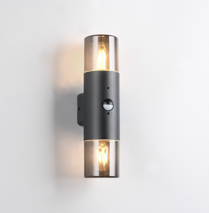 Decorativa e funcional - a luminária de parede da série HOOSIC com sensor de movimento integrado e iluminação ascendente e descendente. No escuro, a luminária de parede revela todo o seu efeito e ilumina uniformemente a área exterior, criando uma intensidade de luz eficaz e agradável. Graças ao alumínio fundido resistente às intempéries em combinação com o grau de proteção IP44, a luminária de parede é ideal para ser montada na fachada da sua casa, na área de entrada, na varanda ou no pátio. O design preto mate com plástico cor de fumo pode ser combinado de várias formas e garante um aspeto moderno.