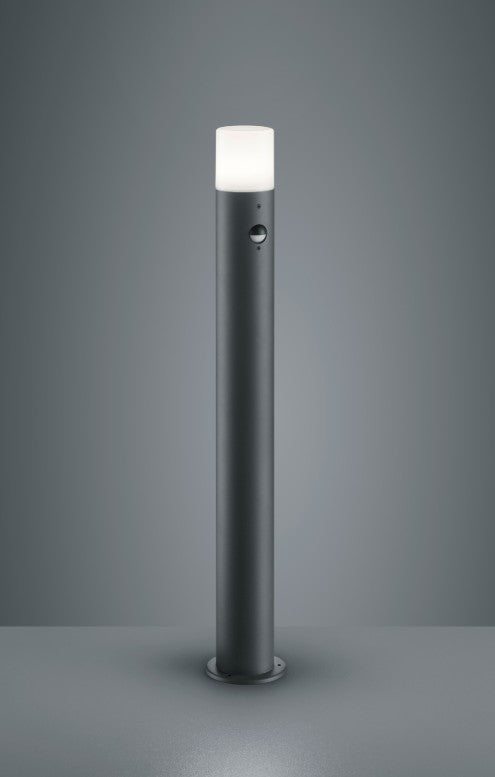 Decorativa e funcional - a luminária de caminho HOOSIC com sensor de movimento integrado. No escuro, a luminária de cor antracite revela todo o seu efeito e ilumina uniformemente a área exterior, criando uma intensidade de luz eficaz e agradável. Graças ao alumínio fundido resistente às intempéries em combinação com plástico branco e ao grau de proteção IP44, o candeeiro de caminho com uma altura de 80 cm e um diâmetro de 9 cm é ideal para iluminar a sua área exterior. O detetor de movimento integrado tem um ângulo de deteção de 120 e um alcance de até 8 metros. A duração da iluminação pode ser regulada individualmente de cinco segundos a sete minutos. O design de cor antracite pode ser combinado de várias formas e garante um aspeto moderno.