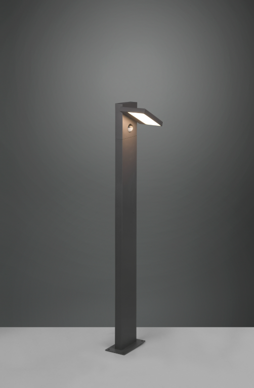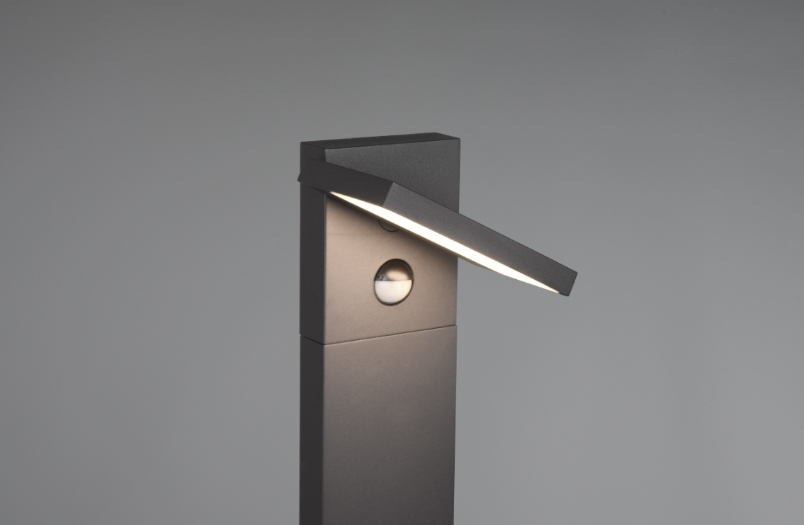 Variável e moderna - assim é a luminária de exterior HORTON. Devido ao design reduzido da luz de caminho, o foco é colocado na funcionalidade. Graças ao abajur giratório, a queda de luz pode ser ajustada individualmente de acordo com as suas necessidades. Uma caraterística especial destas luzes de exterior é o sensor de movimento integrado. Reage ao movimento nas imediações e liga-se e desliga-se automaticamente. Uma garantia de maior segurança e orientação no escuro! Além disso, a luz é feita de alumínio fundido robusto e resistente às intempéries, tornando-a ideal para iluminar o seu espaço exterior.