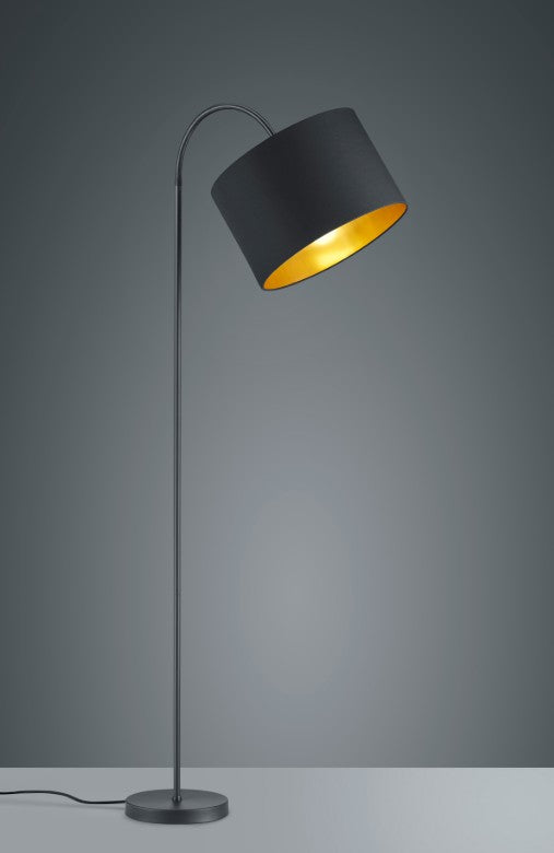 HOSTEL - elegante e acolhedor. Os candeeiros com abajur em tecido criam um ambiente de vida agradável. Criam uma atmosfera acolhedora e proporcionam uma luz suave e delicada. Graças ao seu esquema de cores moderno, o candeeiro de pé HOSTEL transmite aconchego e um toque de elegância. Idealmente, o candeeiro deve ser colocado junto ao sofá, uma vez que um braço flexível também garante o melhor resultado de iluminação possível. Este pode ser alinhado de modo a que o padrão de luz desejado possa ser selecionado livremente. O candeeiro de pé tem uma altura de até 156 cm, dependendo da orientação do abajur. A combinação de cores entre o preto e o dourado tem um aspeto elegante e sofisticado e é um atrativo especial com um excelente efeito de iluminação.