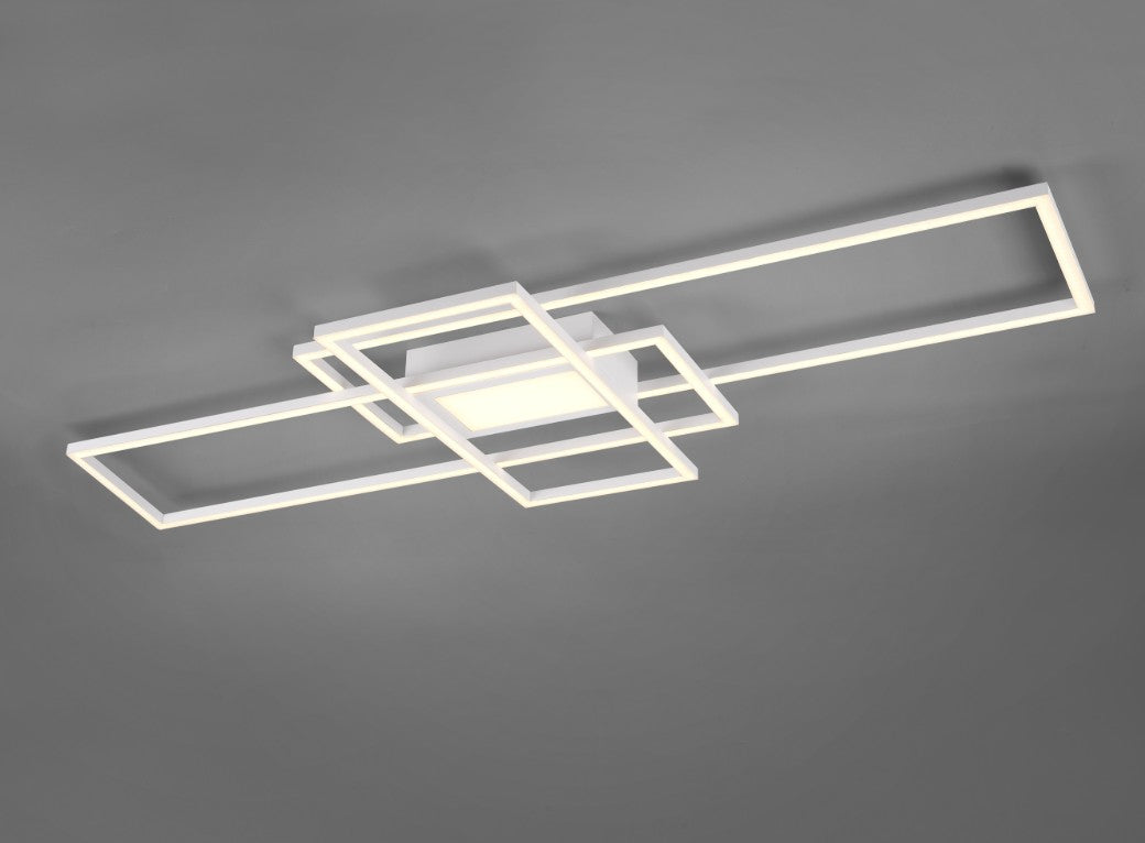 O candeeiro de teto IRVINE cria efeitos de iluminação atmosféricos e suaves e impressiona particularmente pelo seu design elegante, que completa na perfeição qualquer estilo de mobiliário moderno. O candeeiro também impressiona pelas suas funções adicionais práticas. Isto porque o candeeiro tem uma função de luz nocturna e a luminosidade também pode ser regulada continuamente para que possa ser ajustada individualmente em função das condições de iluminação. Graças à função de memória integrada, o último cenário de luz definido com o controlo remoto é definido assim que a luz é desligada e ligada novamente com o interrutor de parede. O candeeiro de teto moderno tem uma altura de 6,5 cm e uma largura de 105 cm. Concebida em branco mate, a luz pode ser combinada com muitos estilos de mobiliário.