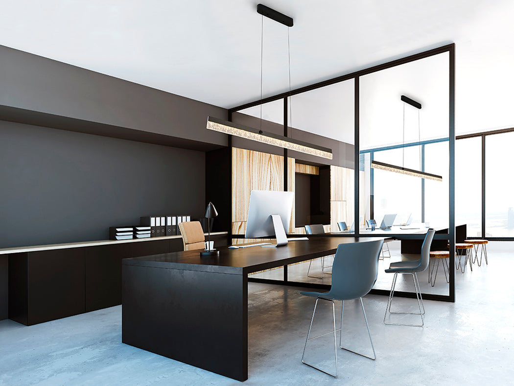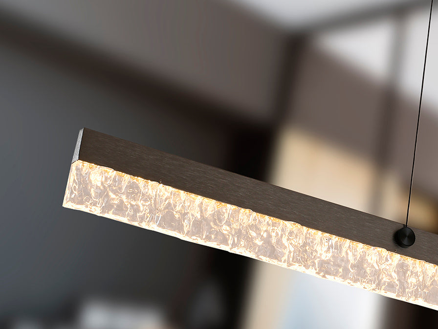 Candeeiro realizado em alumínio, acabamento cinzento escovado e aço preto mate. Difusor: acrílico transparente texturizado. Altura regulável: Sistema sobe e desce. Iluminação LED 24W, CCT: 2700-5000K. 1.600 lm. REGULÁVEL. Inclui comando à distância.