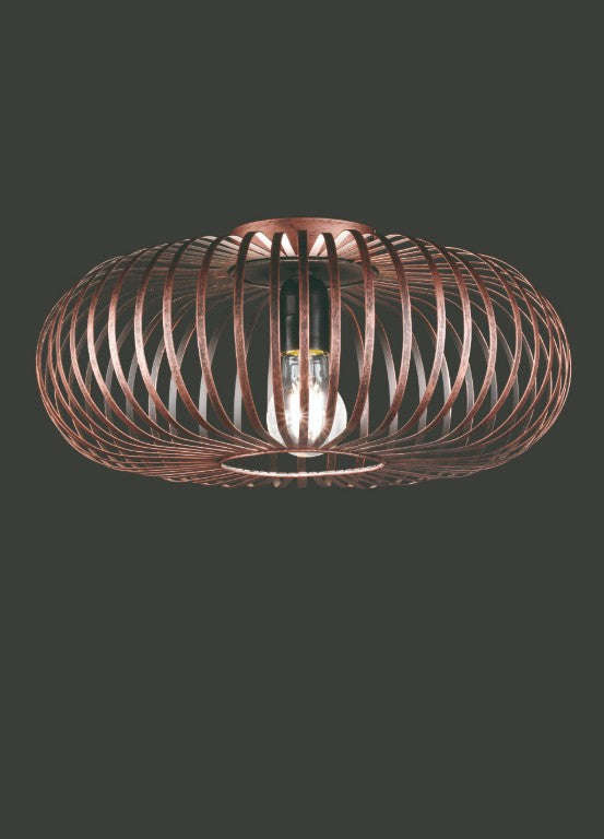 O candeeiro de teto JOHANN é composto por vários arcos metálicos que formam um abajur harmonioso. A luz é refractada pelas facetas individuais e cria um padrão de luz único nas suas paredes. O design invulgar da luminária torna-a um atrativo decorativo de todos os lados e é particularmente eficaz na sua sala de estar, quarto ou área de entrada. O efeito da forma pode ser visto aí e é criado um ótimo resultado de iluminação. Uma vez que é fornecida uma visão direta da fonte de luz, recomendamos a utilização de uma fonte de luz de incandescência para manter uma aparência harmoniosa. O candeeiro está disponível em cores de cobre antigo e pode ser combinado com um pendente a condizer, conforme desejado.