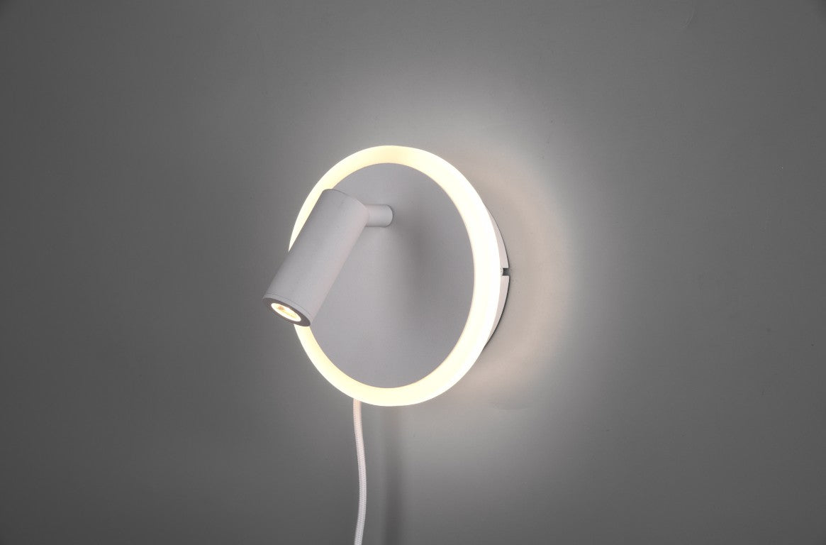 O candeeiro de parede JORDAN tem um design moderno e é definitivamente um atrativo para a sua casa. A luminária fica particularmente bem no seu quarto, por exemplo. É adequado como luz de leitura, mas também pode ser utilizado para criar uma atmosfera acolhedora com iluminação indireta, uma vez que as duas fontes de luz podem ser ligadas separadamente. O candeeiro tem um diâmetro de 15 cm e uma projeção máxima de 12 cm. Em branco mate, realça o estilo moderno e pode ser combinado de forma maravilhosa.