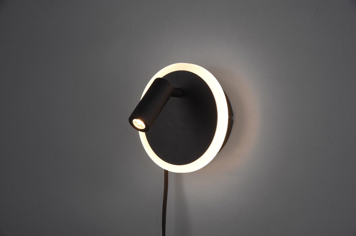 O candeeiro de parede JORDAN tem um design moderno e é definitivamente um atrativo para a sua casa. A luminária fica particularmente bem no seu quarto, por exemplo. É adequado como luz de leitura, mas também pode ser utilizado para criar uma atmosfera acolhedora com iluminação indireta, uma vez que as duas fontes de luz podem ser ligadas separadamente. O candeeiro tem um diâmetro de 15 cm e uma projeção máxima de 12 cm. Em preto mate, realça o estilo moderno e pode ser combinado de forma maravilhosa.