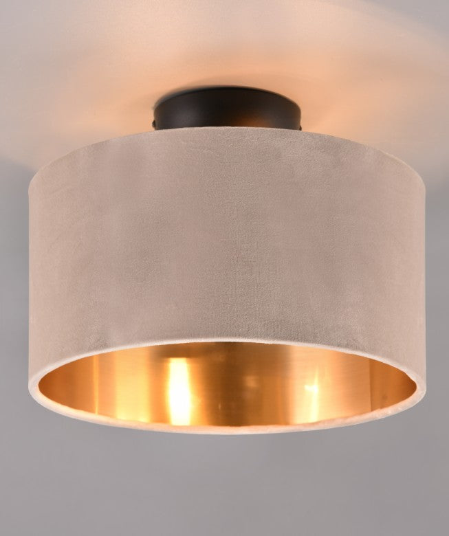 A beleza clássica e simples do candeeiro de teto JULIETA é elegante e atmosférica. A cor neutra e o tecido de aspeto quente do abajur envolvem o candeeiro em aconchego e irradiam calma para o seu ambiente. A cor dourada no interior do abajur também faz com que o candeeiro seja um atrativo elegante. Traga um ambiente harmonioso para o seu quarto ou sala de estar! A mistura de materiais de metal preto mate e veludo bege pode ser facilmente combinada com os interiores existentes.
