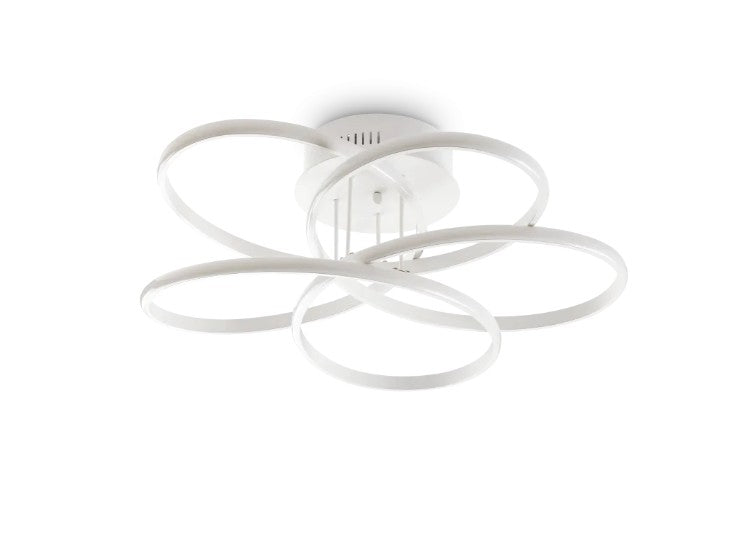 Corpo de metal envernizado branco mate. Difusor em plástico opalino.