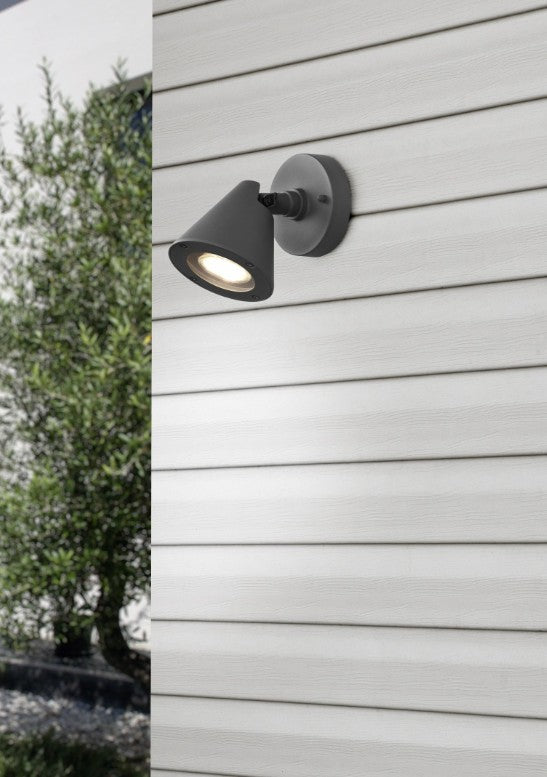 Design reduzido e forma clássica - assim é a nossa luminária de exterior KAVERI. Na área de entrada, na varanda ou na parede do seu terraço, o candeeiro de parede intemporal proporciona um ambiente convidativo e condições de iluminação ideais. Graças ao alumínio fundido resistente às intempéries e ao grau de proteção IP44, a luminária está protegida contra salpicos de água e é, por isso, adequada para utilização no exterior. O elegante esquema de cores antracite irá melhorar o seu espaço exterior com toques de cor modernos.