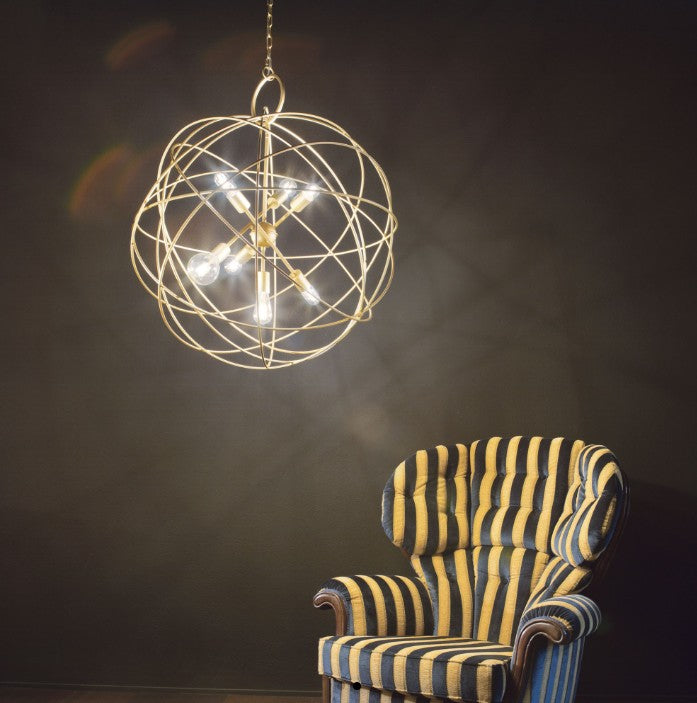 Estrutura totalmente metálica e elementos decorativos. Acabamento em verniz acetinado ouro escuro.
