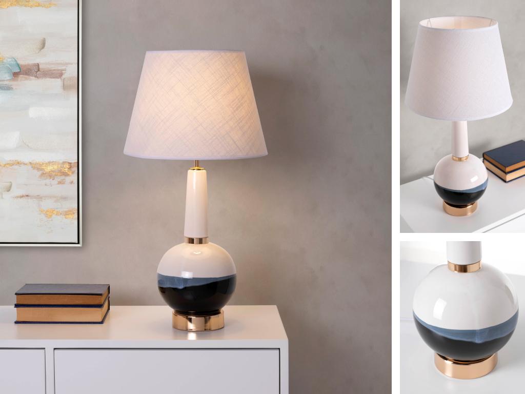 MEDIDAS: COMPRIMENTO: 24,0 CM; ALTURA: 53,0 CM; FUNDO: 24,0 CMATERIAL: CERÂMICO, LINHO COR: BRANCO, CINZA