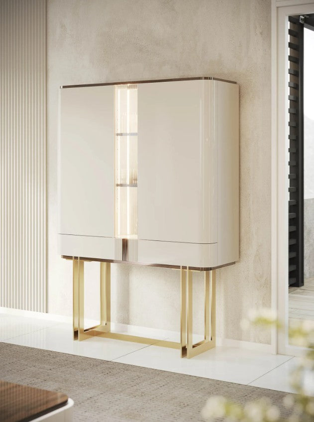 Versátil e elegante, o Licoreiro Daris XLUX é perfeito para aqueles que desejam criar uma sofisticada área de entretenimento em casa. Com um design refinado e intemporal, esta peça apresenta um acabamento em branco, que vai adicionar um toque de luminosidade ao ambiente. Os pés em dourado conferem-lhe requinte e as duas espaçosas gavetas espaçosas e portas oferecem uma ampla capacidade de armazenamento para garrafas, copos e acessórios relacionados. As duas prateleiras no interior permitem organizar os itens de maneira prática e eficiente.