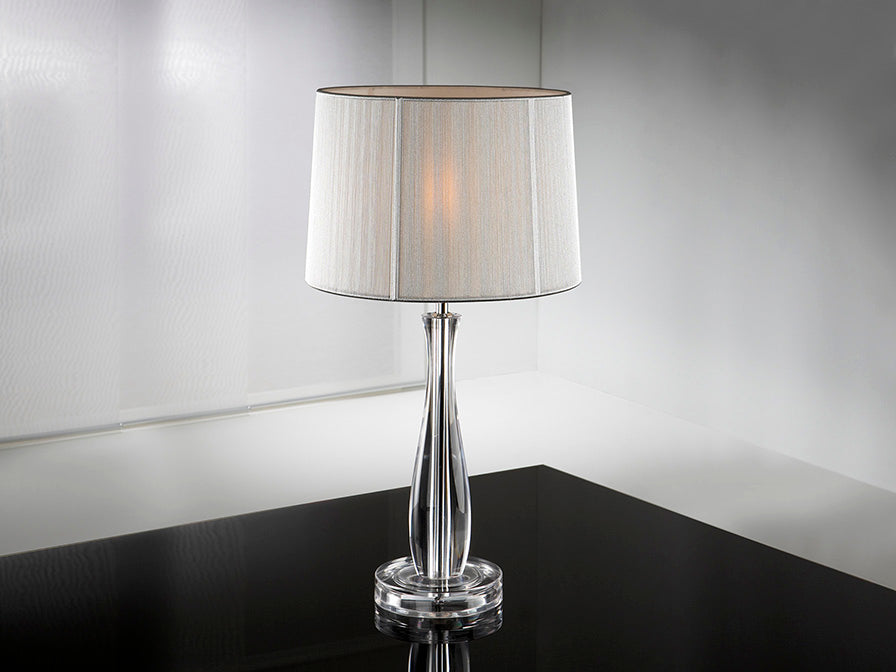 Para secretária, realizado em metacrilato. Tela de fio esticado, em cor prateada.