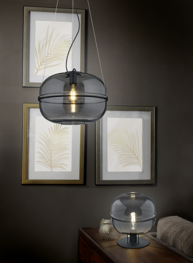 As luminárias características da série LORENA conferem elegância e charme individual à sua casa. Sem iluminação, o abajur de vidro da luminária pendente chama a atenção diretamente devido à sua forma graciosa. Quando iluminado, o vidro espelhado torna-se transparente e cria realces especiais através de reflexos de luz que exalam aconchego e tranquilidade. A mistura de materiais de metal preto mate e vidro cromado torna o candeeiro único e confere à divisão uma atmosfera quente e misteriosa. Para uma iluminação economizadora de energia, recomenda-se a utilização de uma lâmpada LED. Estas são uma óptima alternativa às lâmpadas de halogéneo convencionais e representam uma elevada qualidade de luz e uma poupança de energia de até 80%. Além disso, as lâmpadas LED ajudam-no a beneficiar de uma longa vida útil, de uma baixa produção de calor e, ao mesmo tempo, protegem o ambiente.