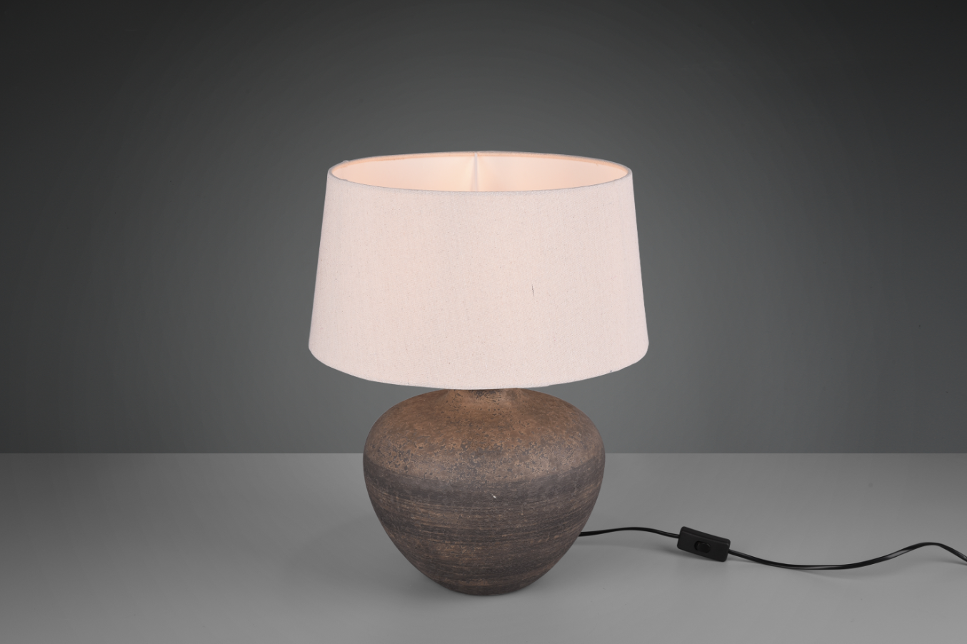 Os materiais naturais estão absolutamente na moda. Criam uma atmosfera acolhedora em sua casa que o convida a ficar. Graças aos materiais em cerâmica e tecido, o candeeiro de mesa LOU confere ao seu espaço um ambiente natural e convidativo. Quer seja como candeeiro de cabeceira no quarto, numa cómoda ou numa mesa de apoio na sala de estar, o candeeiro de mesa cria o ambiente de iluminação certo e, ao mesmo tempo, dá um toque decorativo. O candeeiro está equipado com um interrutor com fio, o que facilita a sua ligação e desligamento. Graças ao esquema de cores bege e castanho simples, o candeeiro de mesa harmoniza-se perfeitamente com cores suaves e conceitos de mobiliário naturais. Para uma iluminação economizadora de energia, recomenda-se a utilização de uma lâmpada LED. Estas são uma óptima alternativa às lâmpadas de halogéneo convencionais e representam uma elevada qualidade de luz e uma poupança de energia de até 80%. Além disso, as lâmpadas LED ajudam-no a beneficiar de uma longa vida útil, de uma baixa produção de calor e, ao mesmo tempo, protegem o ambiente.
