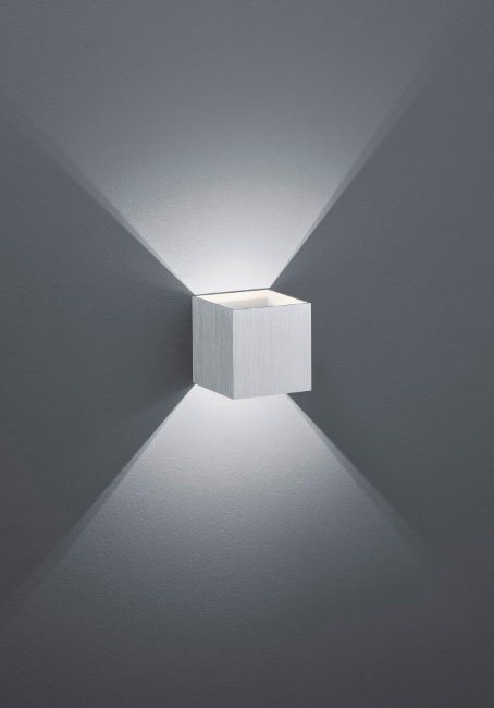 Crie um toque de iluminação moderno e um ambiente atmosférico com a luminária de parede LOUIS em forma de cubo. Um cone de luz eficaz é criado através de uma saída de luz superior e inferior, criando uma imagem global harmoniosa. Integrada na parede da sua sala de estar ou colocada de forma decorativa no corredor ou na escada, a área de aplicação é agradavelmente iluminada. O cubo mede 10x10x10 cm. A luminária metálica tem um exterior em alumínio escovado e um interior branco.