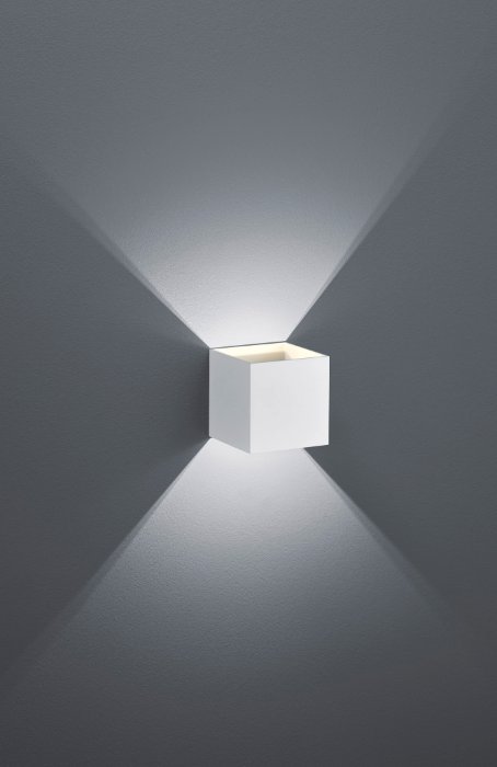 Crie um toque de iluminação moderno e um ambiente atmosférico com a luminária de parede LOUIS em forma de cubo. Um cone de luz eficaz é criado através de uma saída de luz superior e inferior, criando uma imagem global harmoniosa. Integrada na parede da sua sala de estar ou colocada de forma decorativa no corredor ou na escada, a área de aplicação é agradavelmente iluminada. O cubo mede 10x10x10 cm.