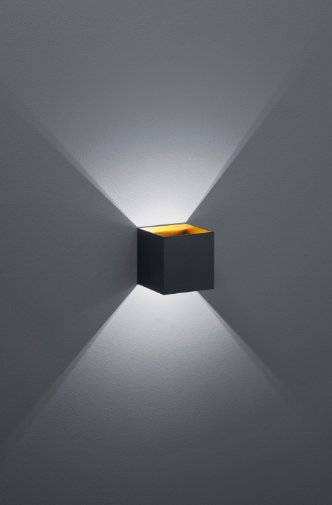 Crie um toque de iluminação moderno e um ambiente atmosférico com a luminária de parede LOUIS em forma de cubo. Um cone de luz eficaz é criado através de uma saída de luz superior e inferior, criando uma imagem global harmoniosa. Integrada na parede da sua sala de estar ou colocada de forma decorativa no corredor ou na escada, a área de aplicação é agradavelmente iluminada. O cubo mede 10x10x10 cm. A luminária metálica tem um exterior preto mate e um interior dourado.